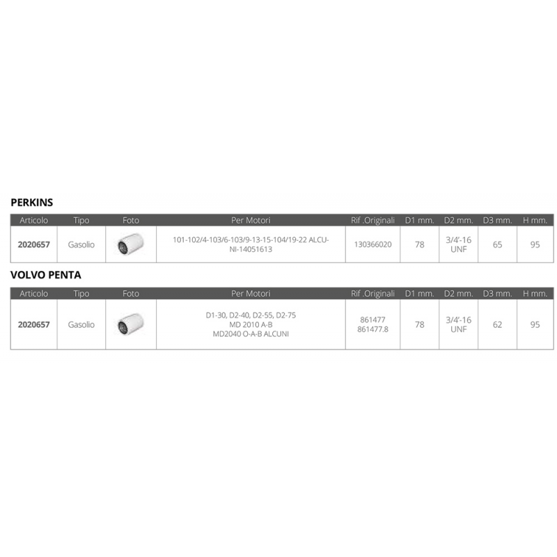| Tipo | FILTRO GASOLIO PERKINS VOLVO |