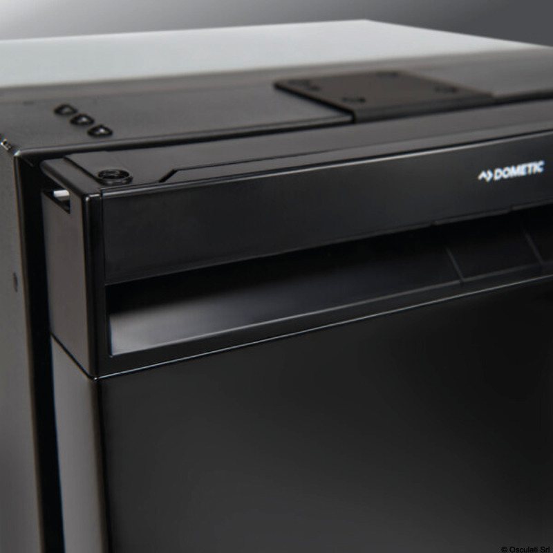 Frigoriferi con pannello nero scuro. Equipaggiati con 3 comodi ripiani e un balconcino per bottiglie o lattine. Scomparto freezer ordinabile separatamente come accessorio.