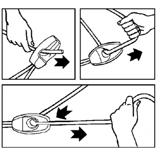 Gancetto in nylon grazie alla sua forma consente di bloccare la corda alla misura desiderata per legare vele o oggetti in generale. Per cime o corde elastiche di Ø mm. 4/6.