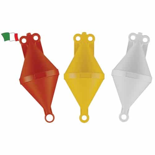 Gavitello biconico in polipropilene con doppio anello utilizzato per delimitazione specchio acqua stabilimento balneare o segnalazione pericolo.