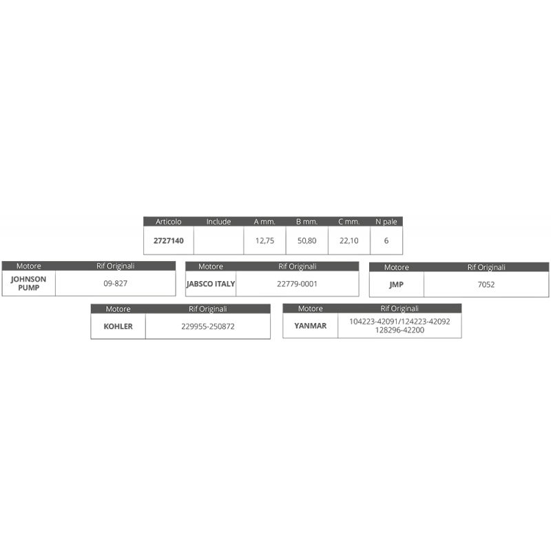 Dim. Ø int.mm. 12,75 Ø est.mm.50,8 spessore mm.22,1, nr.6 pale