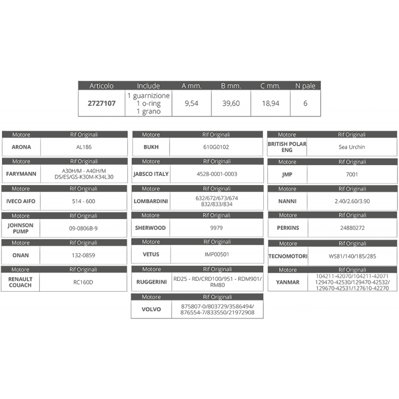 Dim. Ø int.mm. 9,54 Ø est.mm.39,6 spessore mm.18,94, nr.6 pale.