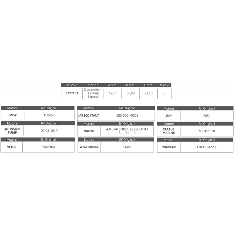 Dim. Ø int.mm. 12,10 Ø est.mm.50,8 spessore mm.22,1, nr.6 pale