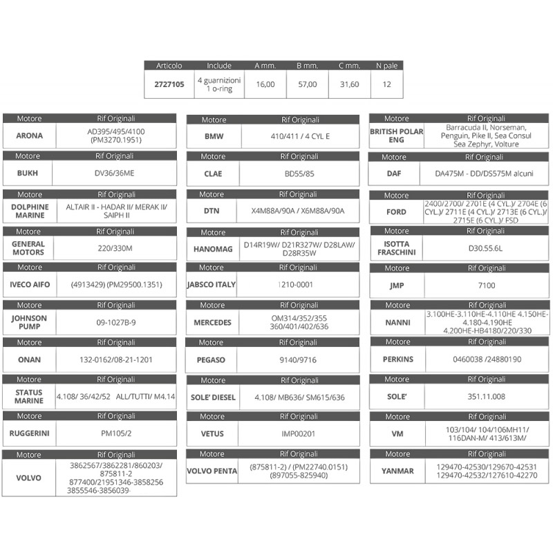 Dim. Ø int.mm. 14,69 Ø est.mm.57 spessore mm.31,6, nr.12 pale.