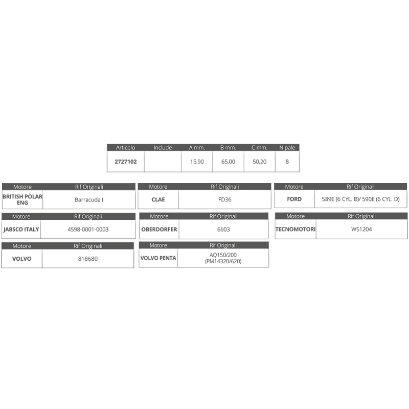 Dim. Ø int.mm. 15,926 Ø est.mm.65 spessore mm.50,2, nr.8 pale.