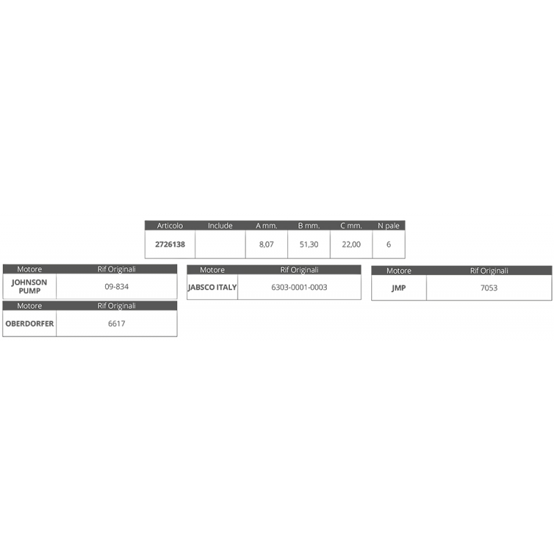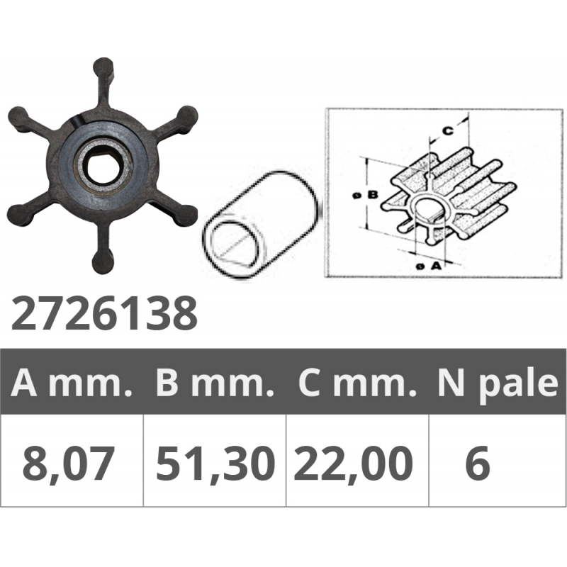 Dim. Ø int.mm. 8,07 Ø est.mm.51,3 spessore mm.22, nr.6 pale