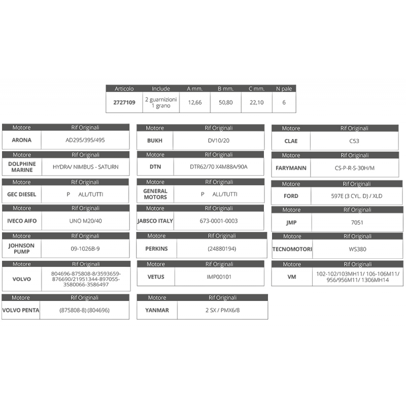 Dim. Ø int.mm. 12,66 Ø est.mm.50,8 spessore mm.22.1, nr.6 pale.