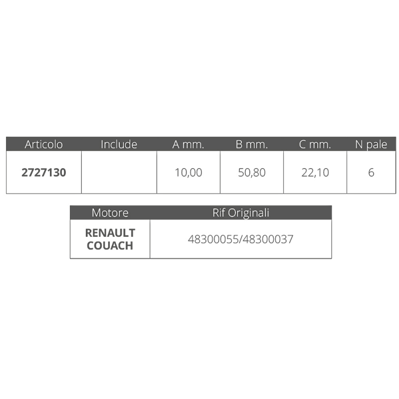 Dim. Ø int.mm. 10 Ø est.mm.50,8 spessore mm.22,1, nr.6 pale