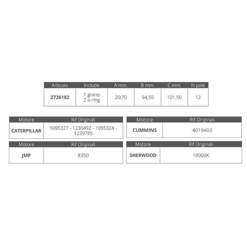 Dim. Ø int.mm. 20,7 Ø est.mm.94,5 spessore mm.101,5, nr.12 pale