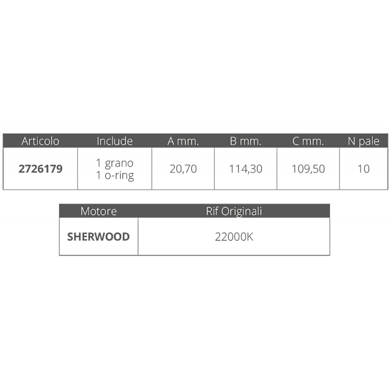 Dim. Ø int.mm. 20,7 Ø est.mm.114,3 spessore mm.109,5 nr.10 pale