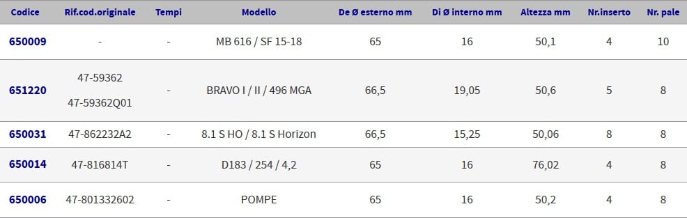 Giranti in neoprene per motori entrobordo Mercruiser.