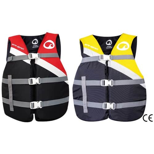 Giubbotto realizzato in polietilene espanso con rivestimento in tessuto di nylon a lunga durata. Dotato di 3 cinghie regolabili con relative fibbie a sgancio rapido.
