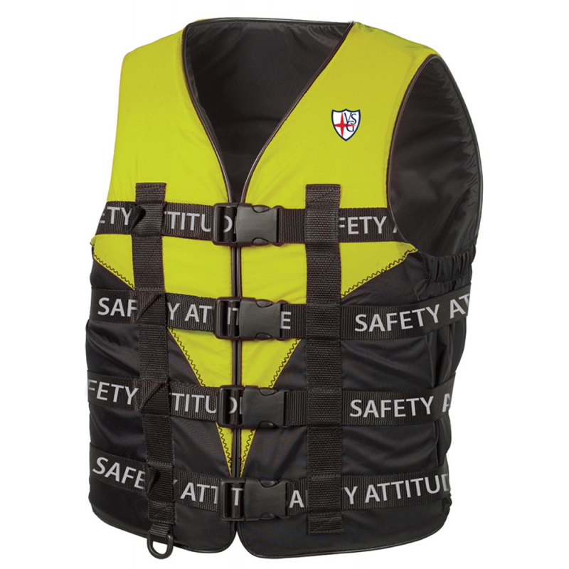 Giubbotto di salvataggio/aiuto al galleggiamento 50 NParticolarmente adatto per sport dinamici, sci acquatico, sky jet, etc. Protezionedorsale imbottita. Sistema di regolazione composto da 4 cinghie e relative fibbiea sgancio rapido. Colori assortiti.UNI EN ISO 12402-5. Circonferenza toracica cm.100/110