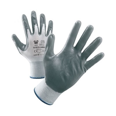 Guanti di protezione con polsini elasticizzati in maglia, dorso aerato, filo continuo 100% poliestere-nitrile. Ottima resistenza all’abrasione. Palmo ricoperto in nitrile per maggiore protezione in presenza di oli, grasso e liquidi.