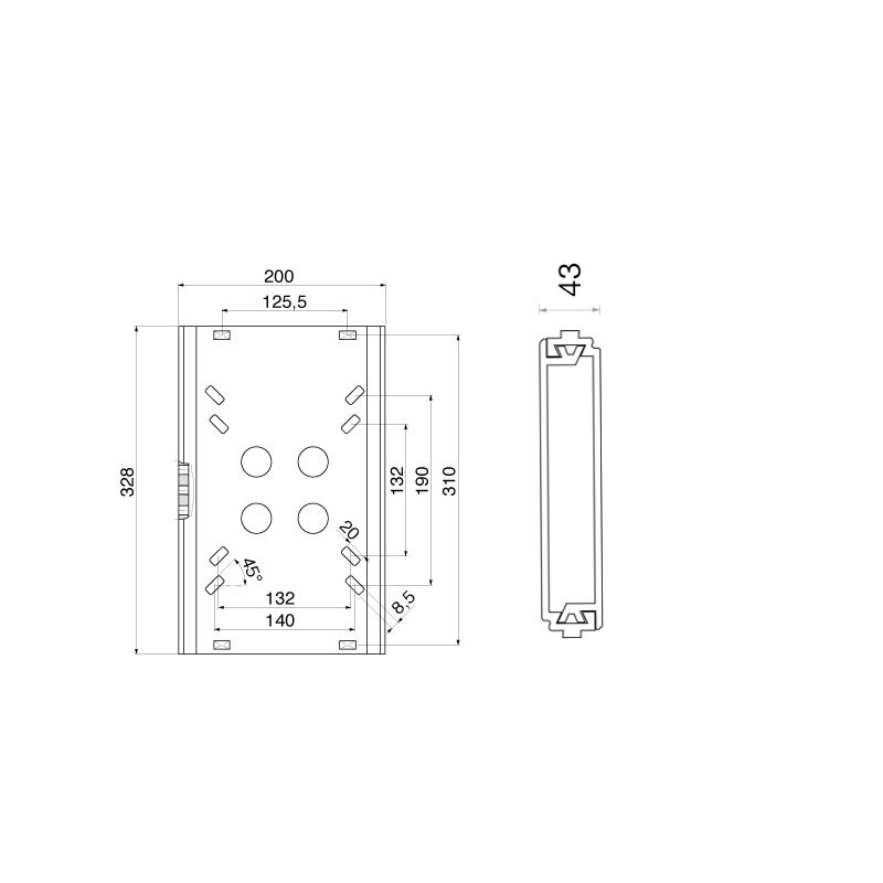 Guida scorrevole in lega leggera mm. 200×330 per art. 6363315/20/23.Si adatta alle scocche art. 6363290/93.