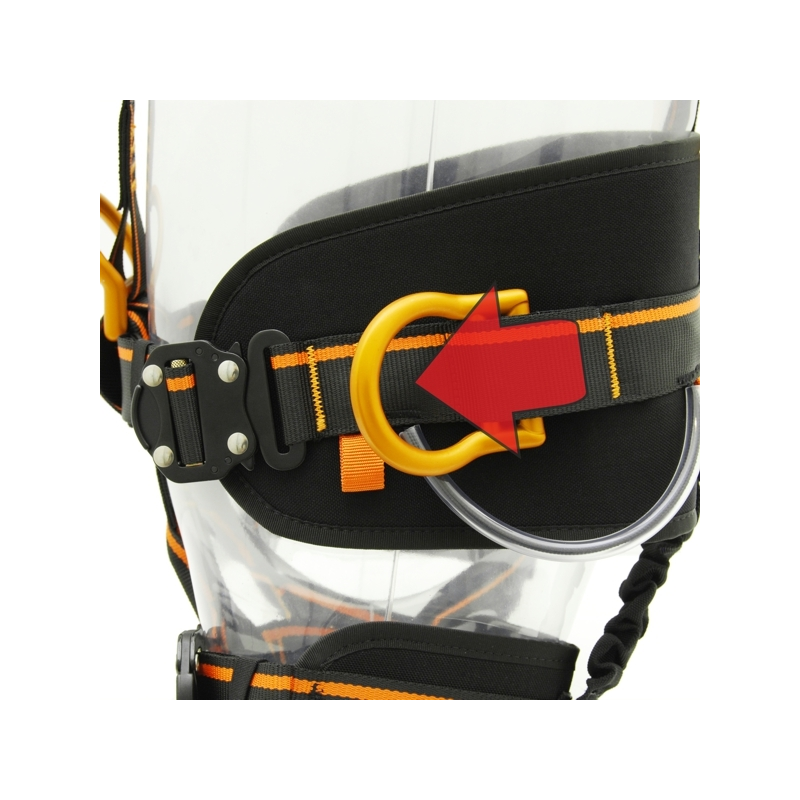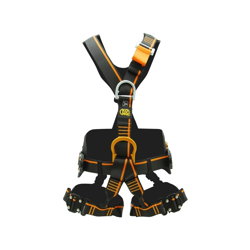 Fabbricato in poliammide con ampio fascione girovita con taglio alto, per il massimo sostegno della fascia lombare, comode imbottiture sui cosciali, 2 ampi anelli porta-materiale laterali, 5 asole in fettuccia per ospitare materiale isolato e permettere di personalizzare al massimo la disposizione dell’attrezzatura, facilitandone l’immediata individuazione, 4 fibbie RAPIDE di chiusura su vita e cosciali. Punti di attacco anticaduta sternale e dorsale. Punto di attacco ventrale per la progressione su fune. Punti di posizionamento laterali in alluminio ripiegabili a scatto, che riducono la possibilità d’impiglio quando non utilizzati. EN 361 – EN 358 – EN 813