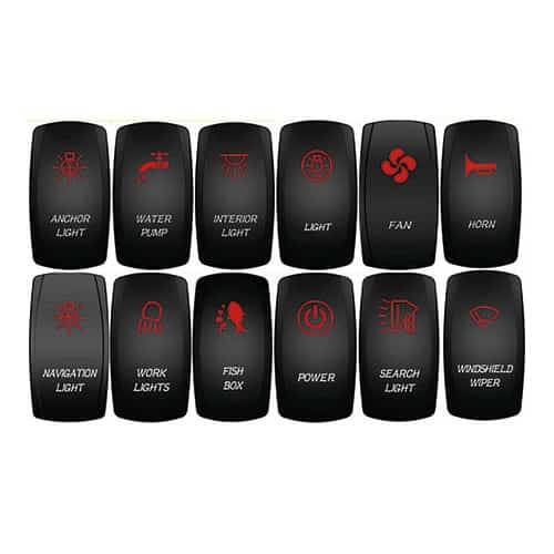 Interruttori basculanti 12/24V (20/10A) impermeabili IP68 con guarnizione in Nitrile.