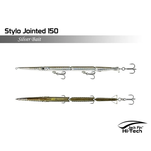 Artificiale Jack Fin Stylo 150 Jointed è un’apprezzata esca snodata da spinning per imitare in modo realistico in modo realistico il movimento dell’aguglia, ideale per la pesca della spigola e pesci serra. L’esca è snodata in tre sezioni e dotata di un innovativo “paddle tail” (coda a paletta) che genera un movimento sinuoso ed estremamente naturale, rendendola realistica “come una vera aguglia”. È efficace sia con recuperi veloci (per pesci attivi) che lenti (per pesci apatici).