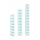 Landa forata in acciaio inox AISI 316. Dimensioni: Larg 14 mm. , Spess 2 mm. , Ø fori 6 mm. Lungh 80 mm.