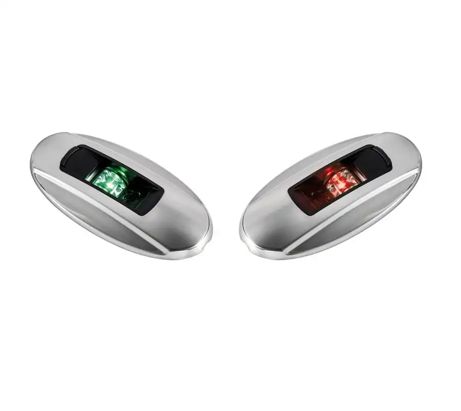 Luci di navigazione con corpo in policarbonato nero e scocca in acciaio inox AISI 316 lucidato a specchio, per l’ottimale orientamento del settore luminoso si consiglia il montaggio su una superficie angolato di circa 22° rispetto l’asse di prua.