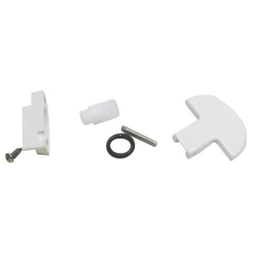 Solida maniglia di ricambio per sportelli costruita in abs bianco.