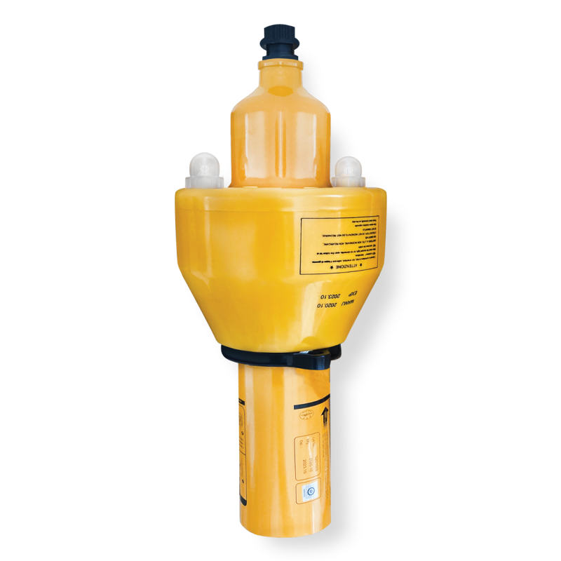Segnale fumogeno arancione con luci ad attivazione automatica per luso in qualsiasi situazione di emergenza uomo in mare. Conforme Solas 74/88, Marine Equipment Directive 2002/75/EC, Res. MSC. 48 [66]- MSC 81[70]. Dimensioni Ø mm. 190x 450h. Peso Kg.4