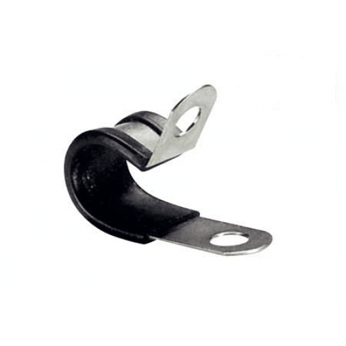Morsetto gommato fermacavo o fermatubo con banda da 16 mm in acciaio inox per sostenere e fissare tubi e cavi di tutti i tipi.