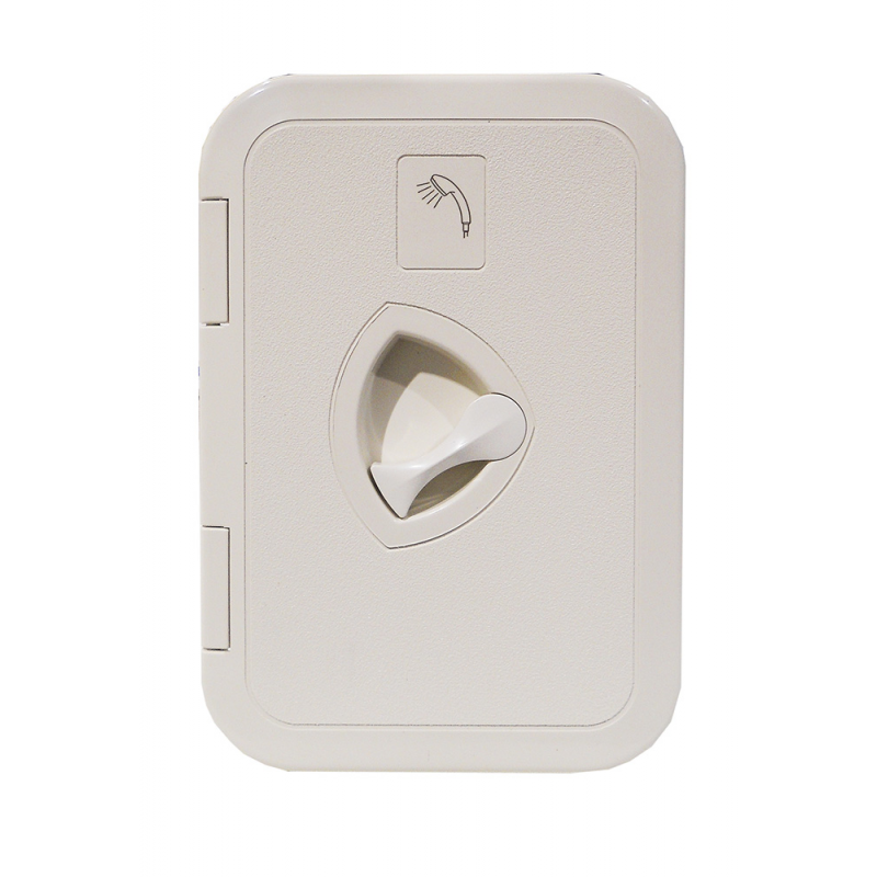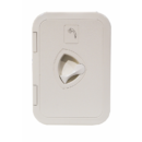 Contenitore in ABS bianco RAL 9003 con sportello e maniglia di chiusura. Dimensioni mm 245x170x110 profondità. Taglio mm 190×110.