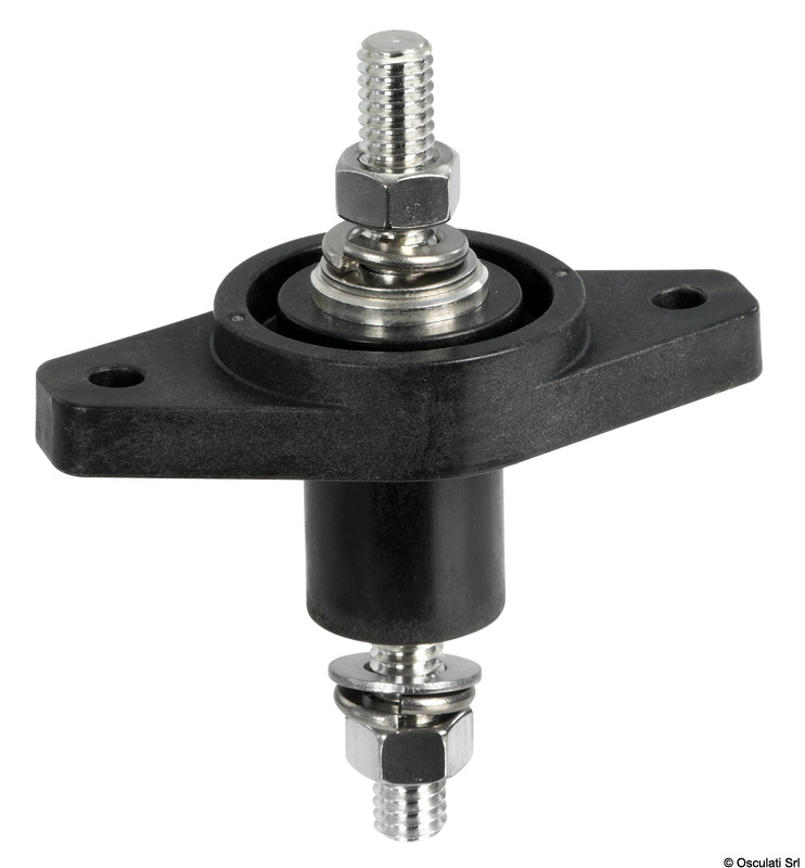 Adatto per alti amperaggi. Base in nylon/fibra vetro. Perno e dadi in acciaio inox.