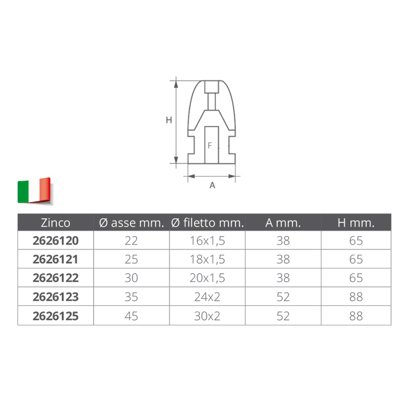 OGIVA ASSE Ø MM.25, OGIVA ASSE Ø MM.30, OGIVA ASSE Ø MM.45, OGIVA ASSE Ø MM.22