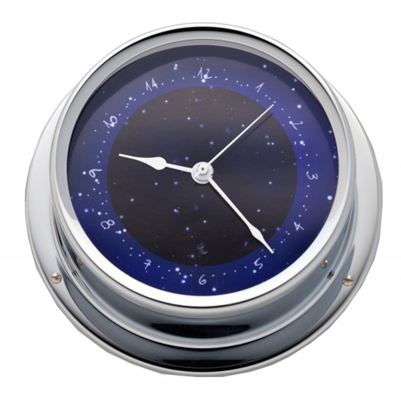 Strumento di bordo in ottone cromato con quadrante blu