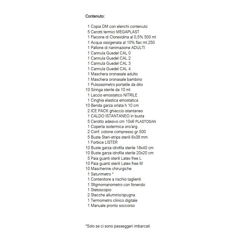 Package completo del materiale sanitario che deve far parte della dotazione di bordo come da nuovoD.M. 10/03/2022 TABELLA A