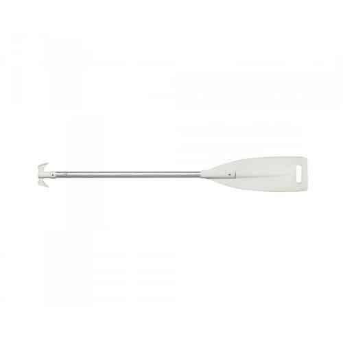 Pagaia in lega leggera con pala in ABS bianco e gancio d’accosto in nylon terminale.