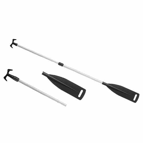 Pagaia telescopica in alluminio con gancio d’accosto e pala scomponibile. Può essere utilizzata anche come comodo ed utile mezzo marinaio.
