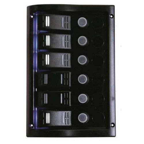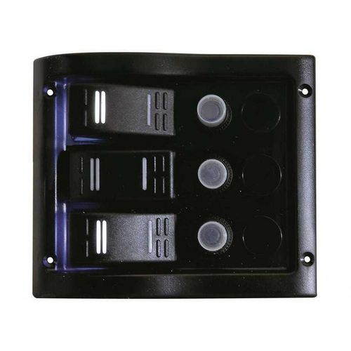 Pannello anodizzato nero con valvole automatiche reinseribili, interruttori stagni e spie led completo di etichette prestampate.