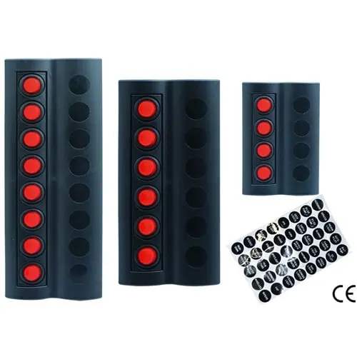 Pannello elettrico di comando in ABS con interruttori a bascula retroilluminati a LED e relativi dispositivi termici riarmabili completo di targhette adesive per l’identificazione delle utenze e montaggio universale sia in verticale che in orizzontale.