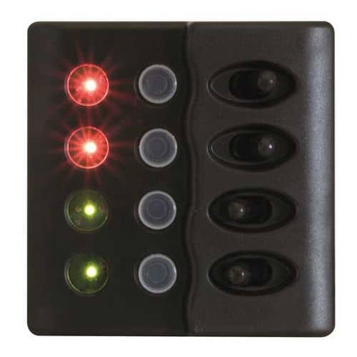 Pannello precablato in ABS con interruttori impermeabili, spie led e valvole automatiche reinseribili.