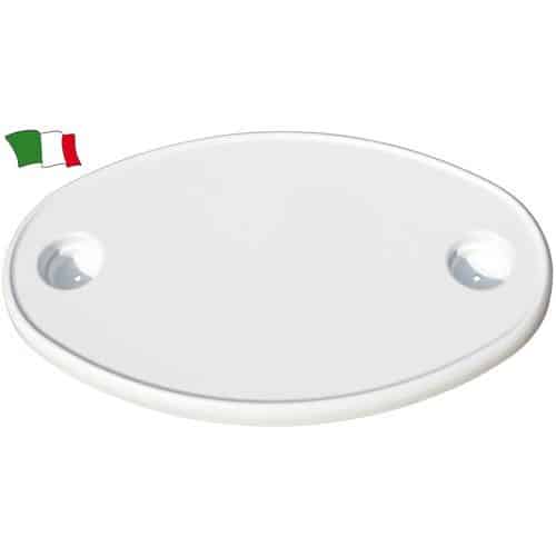 Piano tavolo in ABS stampato colore bianco con alloggiamenti per bicchieri e lattine. Arredamento barca.