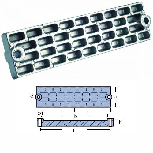 PIASTRA per motori fuoribordo Mercury 25/50/60/75 HP – Mercruiser E.B. 90/100 HP sino a 91 115/190 HP – Superamerica 80/115 HP. ZINCO: 0,670 kg – 1,47 lbs