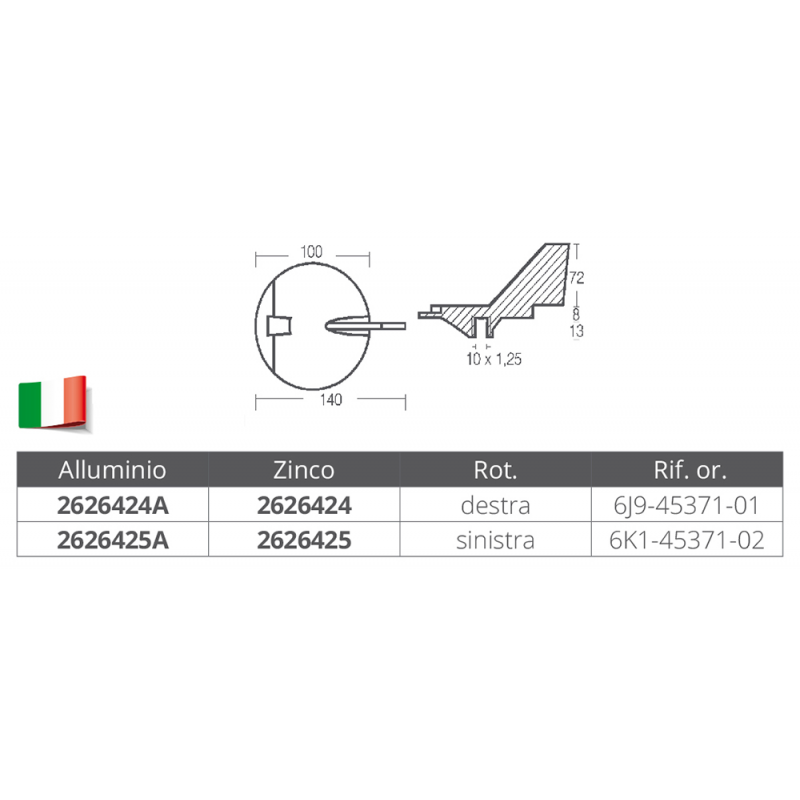 Pinna per motori Yamaha per 150-200 HP (rif. or. 6J9-45371-01)
