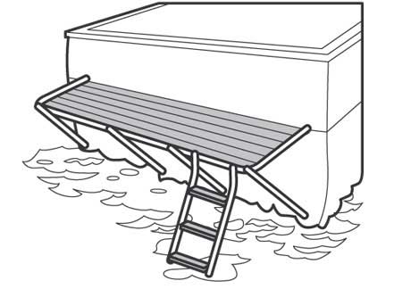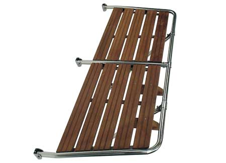 Plancia di poppa larga in doghe di legno marino con telaio in Acciaio Inox AISI 316.