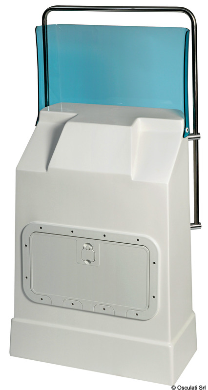 Fabbricata in vetroresina bianca, provvista di roll-bar in acciaio inox, parabrezza in plexiglass, gavone centrale apribile.