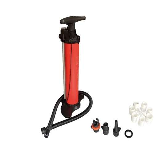 Pompa scoprega fabbricata in ABS e alluminio, ideale per il gonfiaggio e sgonfiaggio di battelli pneumatici, SUP, kayaks, vele per kiteboarding e qualsiasi altra tipologia di gonfiabile in quanto, con il funzionamento a stantuffo a flusso continuo, consente di raggiungere il gonfiaggio completo con il minimo sforzo ed in breve tempo.