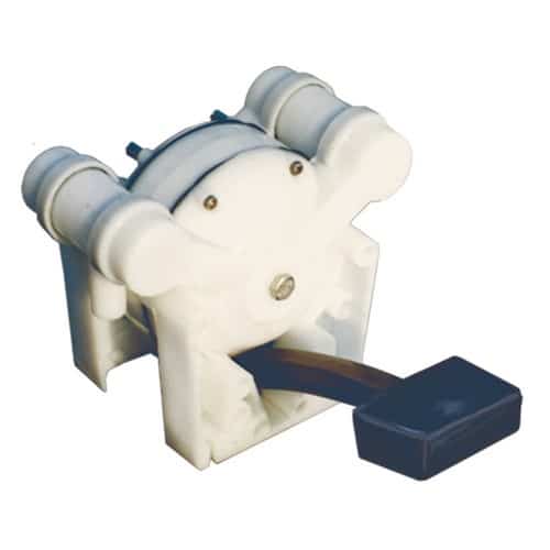 Pompa a piede per lavelli e docce. Corpo in nylon, membrana in neoprene e pedale in lega leggera.