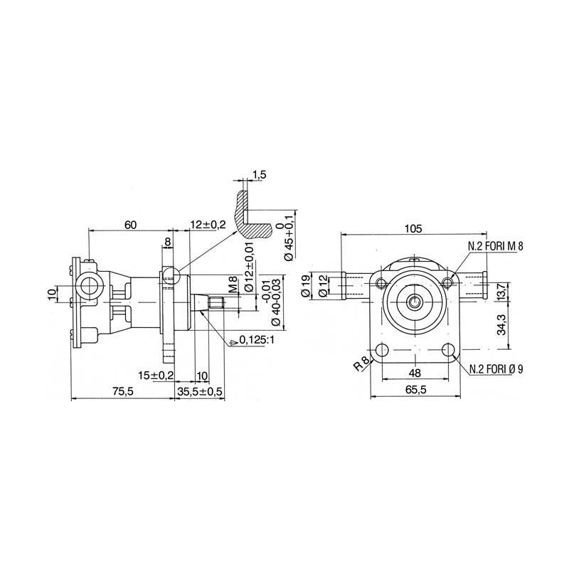 Pompa autoadescante in bronzo, girante in neoprene, per raffreddamento motori, portagomma Ø mm. 20, portata It./min. 9/18 per motori Perkins. Girante di ricambio art. 2727107