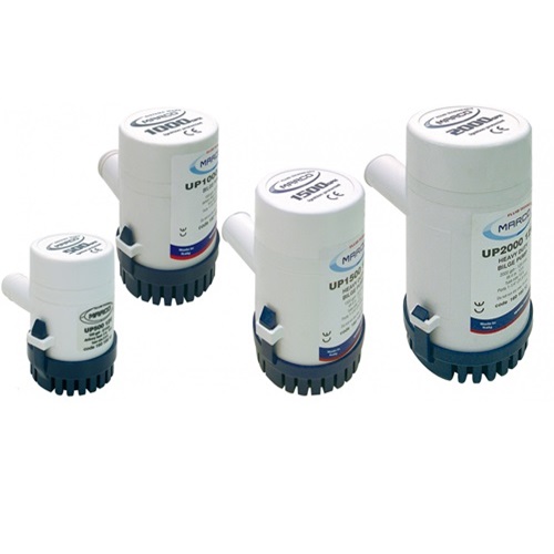 Pompa ad immersione per svuotamento sentina, Involucro in robusto abs antiurto, resistente alla corrosione ed alla elettrolisi con alberino in acciaio inox e cavi stagnati.