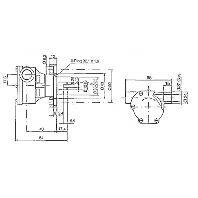 Pompa autoadescante in bronzo, bocche da 3/8, portata It./min. 13/28 per motori Ruggerini,Lombardini, Nanni, Mitsubishi, Lister Petter, Watermota. Girante di ricambio art.2727101