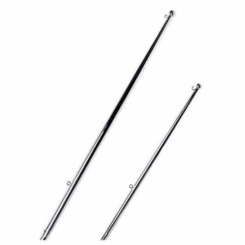 Portabandiera in acciaio inox lucidato a specchio con innesto a scatto con pallina inox, terminali e occhielli inox, per fissaggio bandiera.