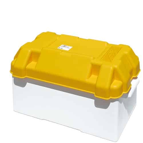 CASSETTE PORTABATTERIA in resistente poliuretano, provviste di cinghie di chiusura. Contenitore cassetta per batteria impianto elettrico.