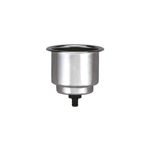 Portabicchiere e lattine in acciaio inox da incassare su piano, completo di scarico con portagomma in plastica.